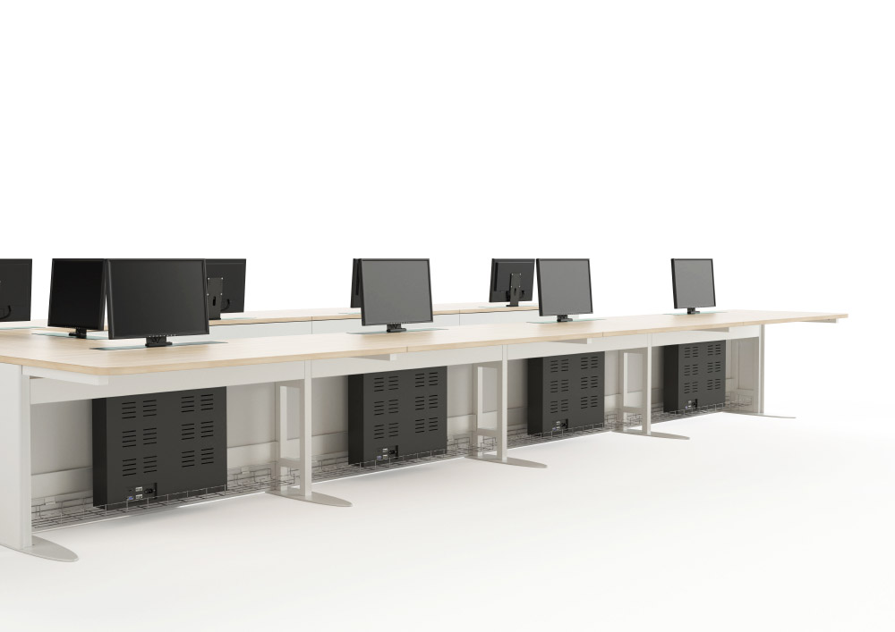 Grâce à leur faible encombrement, ces systèmes s’intègrent facilement dans une table de réunion. Une simple découpe permet de les intégrer dans une table.